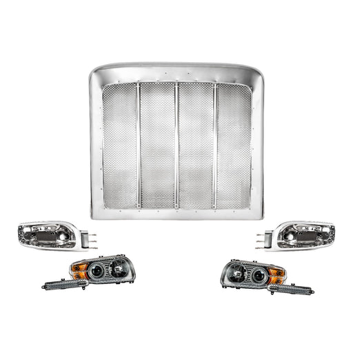 PeterbiltFit: Peterbilt 389 (2010-present) Premium polished metal headlamp housing assembly, Polished metal grille and hight quality headlight designed for...